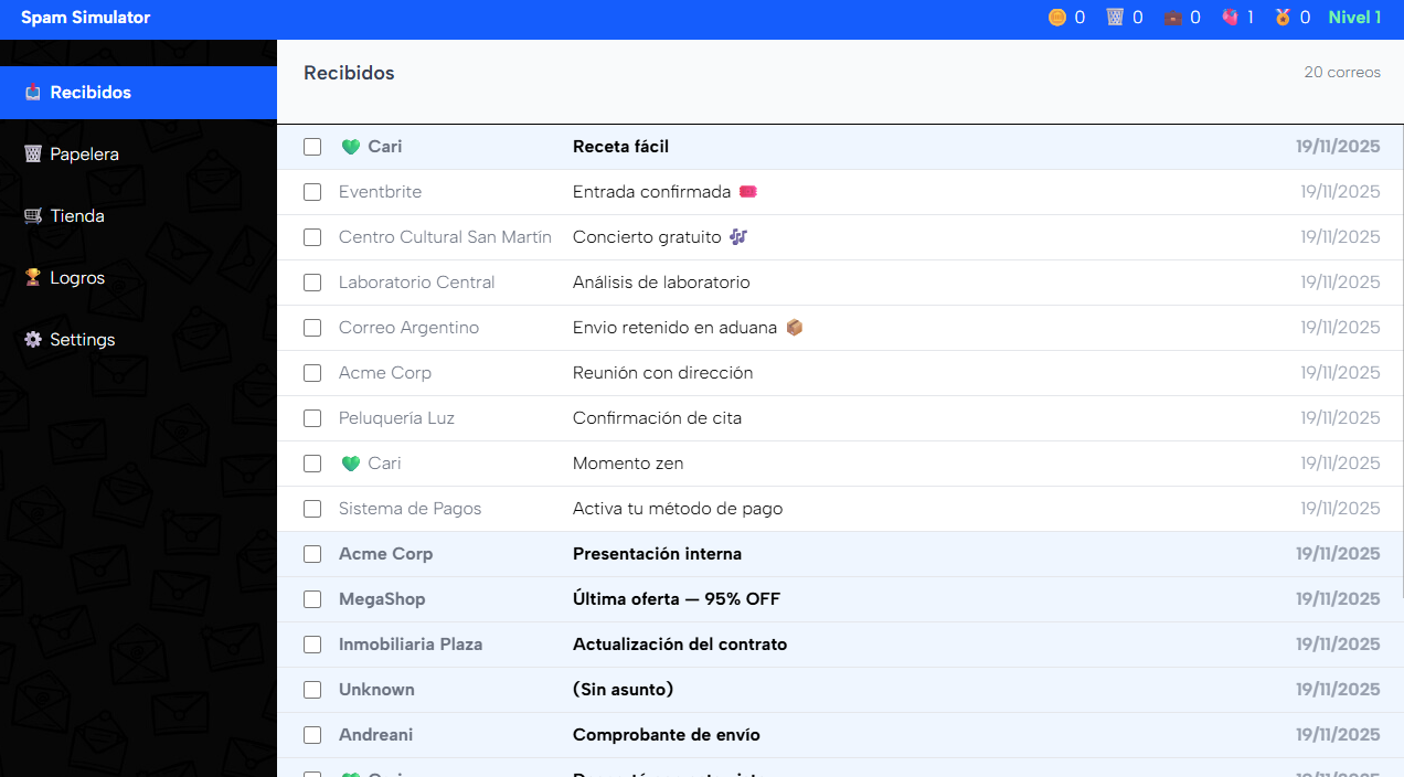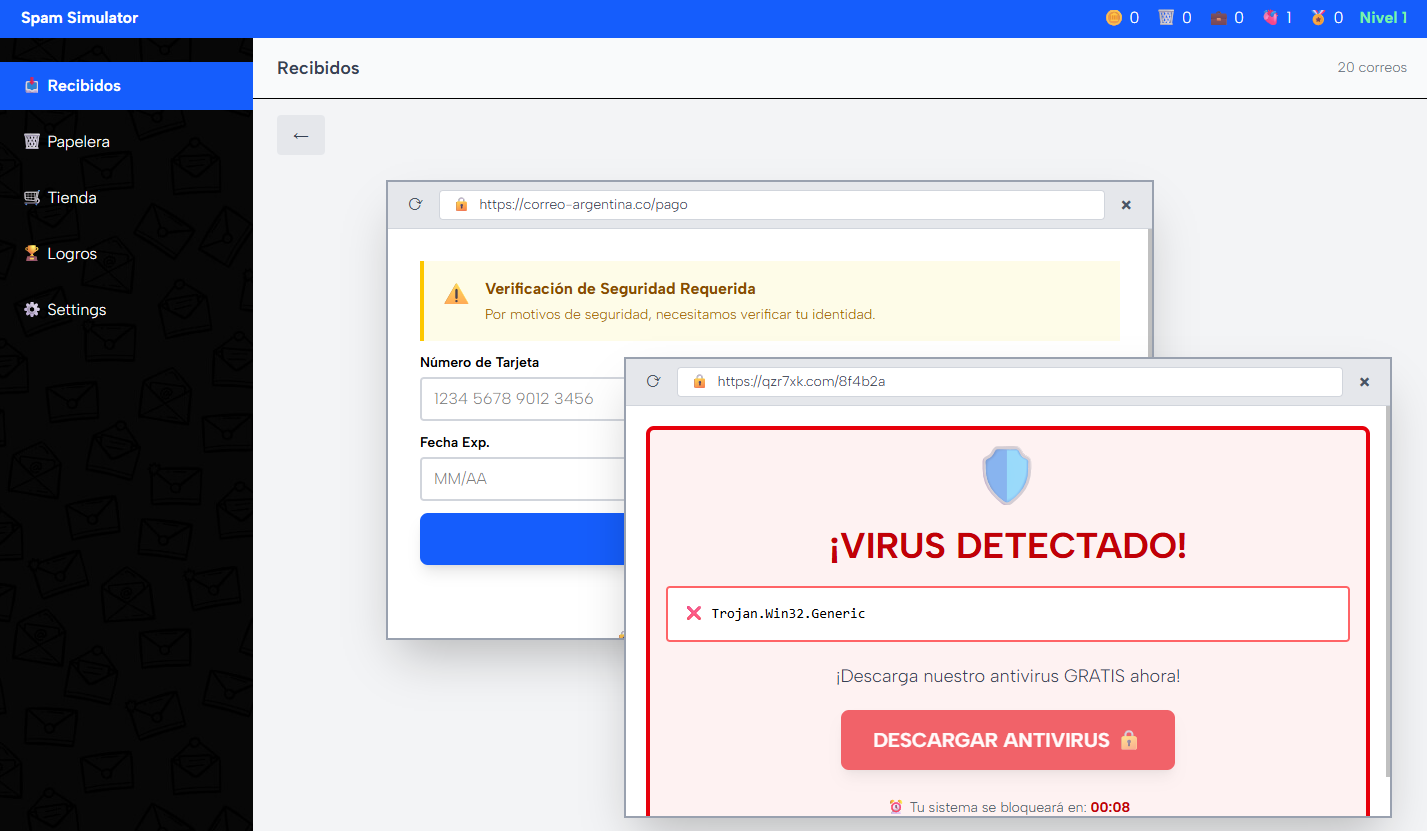 ¡Bienvenido! Pon a prueba tu habilidad para detectar y gestionar correos sospechosos.